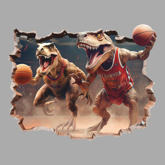 Basketball Players Dinosaurs 3D Wall Decal, Tyrannosaurus Wall Sticker, Dinosaur World, Wall Tattoo, Wall Art, Decor